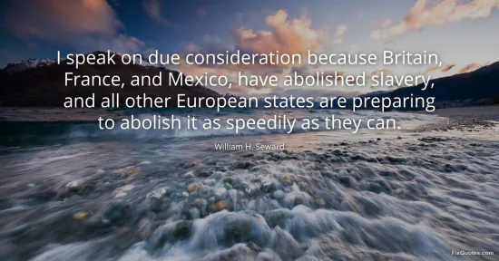 Seward, William H. "I speak on due consideration because Britain, France, and Mexico, have abolished slavery, and all other European states are preparing to abolish it as speedily as they can." FixQuotes. January 18, 2026. https://fixquotes.com/quotes/i-speak-on-due-consideration-because-britain-5878/.