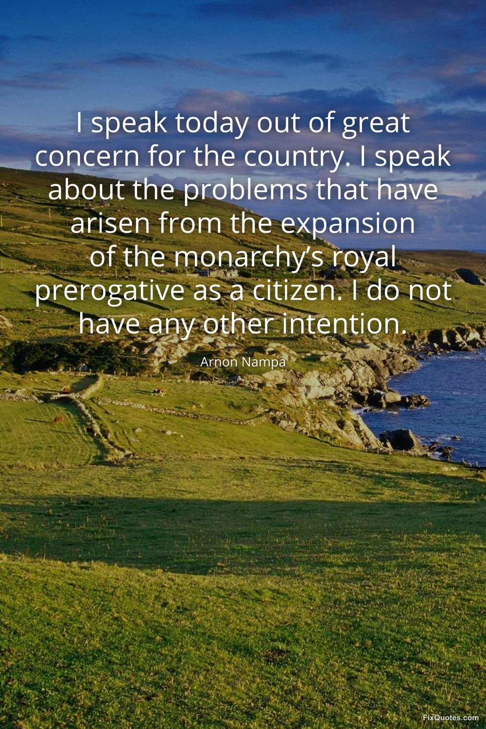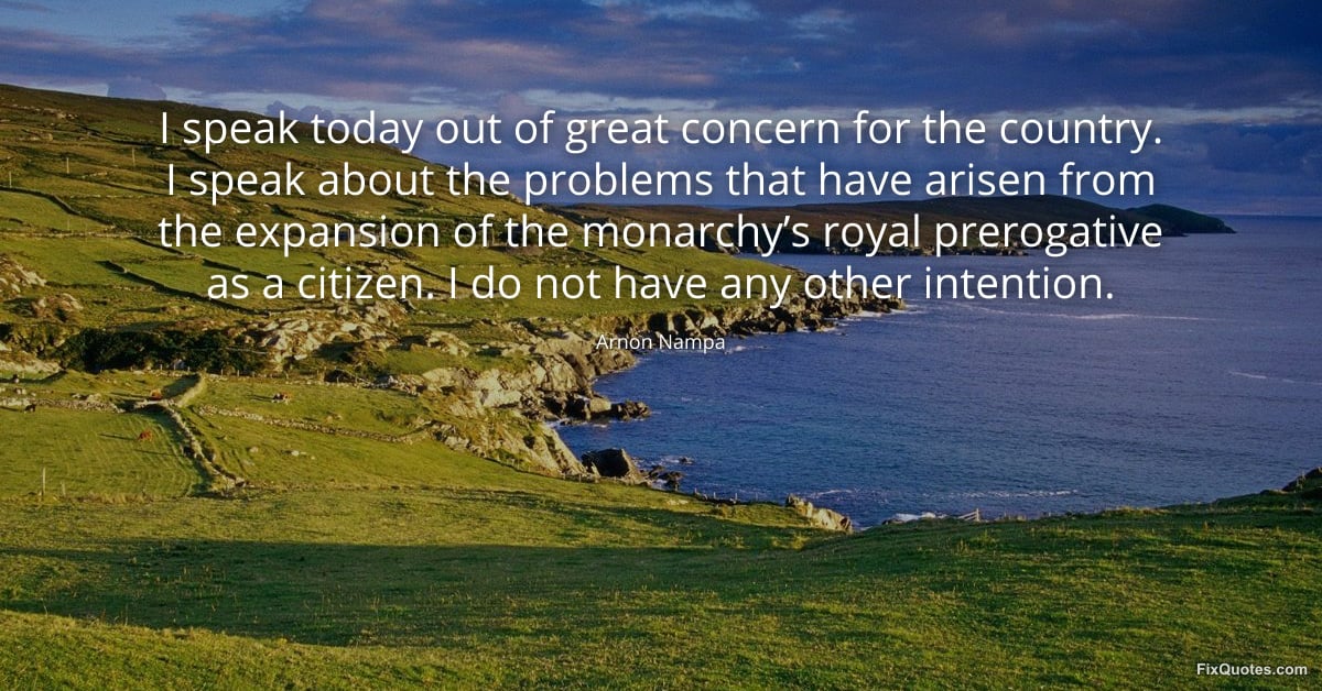 Nampa, Arnon. (2026, March 9). I speak today out of great concern for the country. I speak about the problems that have arisen from the expansion of the monarchy’s royal prerogative as a citizen. I do not have any other intention. FixQuotes. https://fixquotes.com/quotes/i-speak-today-out-of-great-concern-for-the-185776/
