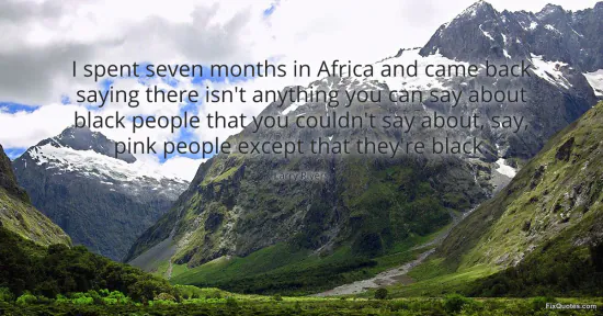 Rivers, Larry. (2026, January 15). I spent seven months in Africa and came back saying there isn't anything you can say about black people that you couldn't say about, say, pink people except that they're black. FixQuotes. https://fixquotes.com/quotes/i-spent-seven-months-in-africa-and-came-back-170432/