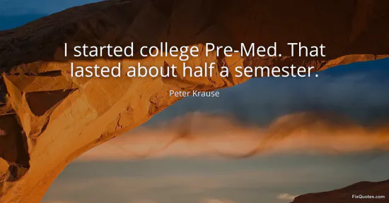 Krause, Peter. (2026, January 15). I started college Pre-Med. That lasted about half a semester. FixQuotes. https://fixquotes.com/quotes/i-started-college-pre-med-that-lasted-about-half-159460/