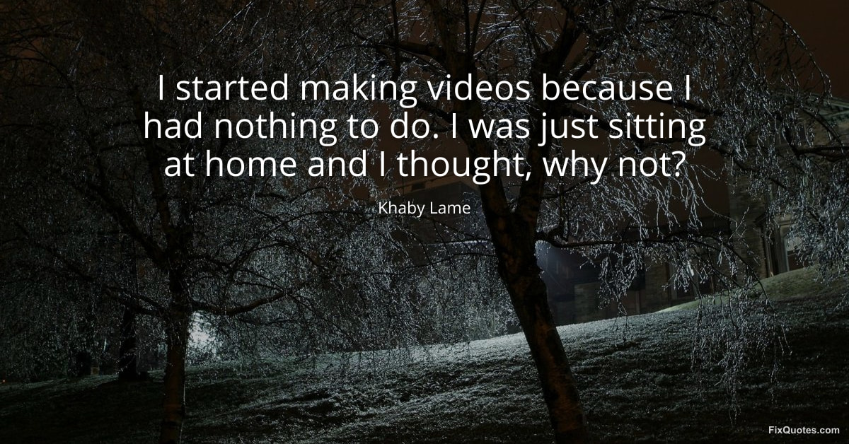 Lame, Khaby. (2026, January 30). I started making videos because I had nothing to do. I was just sitting at home and I thought, why not? FixQuotes. https://fixquotes.com/quotes/i-started-making-videos-because-i-had-nothing-to-184753/
