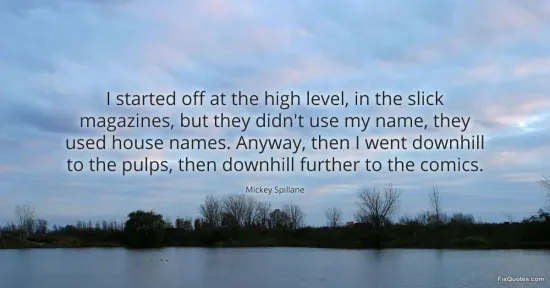 "I started off at the high level, in the slick magazines, but they didn't use my name, they used house names. Anyway, then I went downhill to the pulps, then downhill further to the comics"