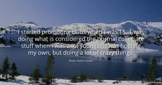 Green, Brian Austin. "I started promoting clubs when I was 15. 1 was doing what is considered the normal collegiate stuff when I was a lot younger. I was holding my own, but doing a lot of crazy things." FixQuotes. January 17, 2026. https://fixquotes.com/quotes/i-started-promoting-clubs-when-i-was-15-1-was-48200/.