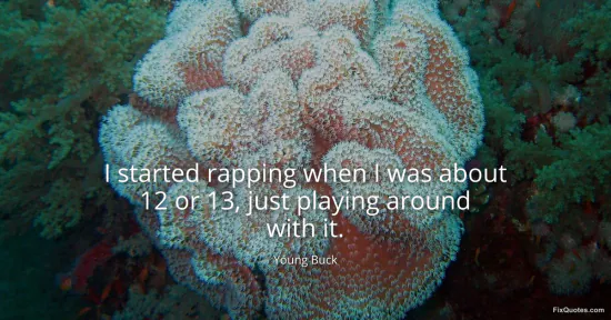 Buck, Young. "I started rapping when I was about 12 or 13, just playing around with it." FixQuotes. January 16, 2026. https://fixquotes.com/quotes/i-started-rapping-when-i-was-about-12-or-13-just-96730/.