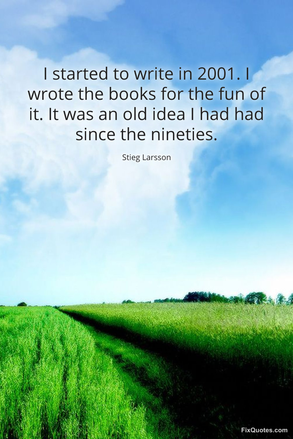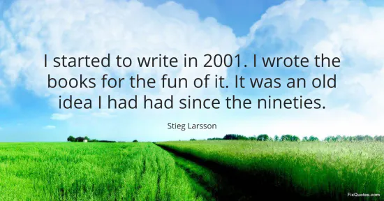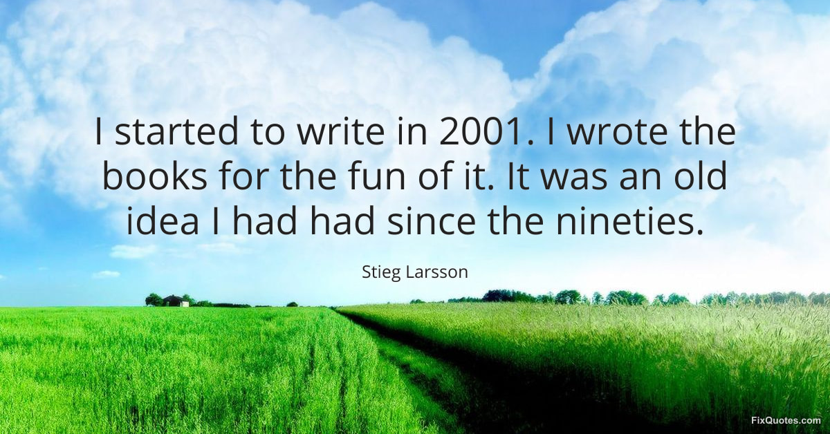 Larsson, Stieg. (2026, January 16). I started to write in 2001. I wrote the books for the fun of it. It was an old idea I had had since the nineties. FixQuotes. https://fixquotes.com/quotes/i-started-to-write-in-2001-i-wrote-the-books-for-122719/