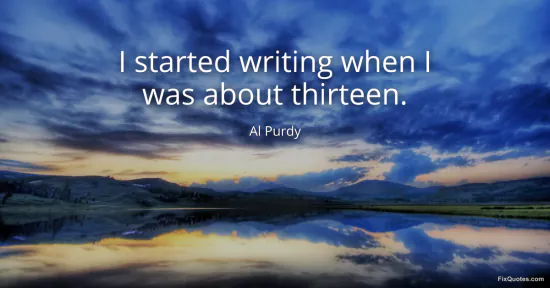 Purdy, Al. (2026, January 16). I started writing when I was about thirteen. FixQuotes. https://fixquotes.com/quotes/i-started-writing-when-i-was-about-thirteen-138620/