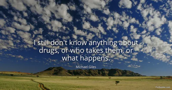 Giles, Michael. (2026, January 16). I still don't know anything about drugs, or who takes them, or what happens. FixQuotes. https://fixquotes.com/quotes/i-still-dont-know-anything-about-drugs-or-who-99777/