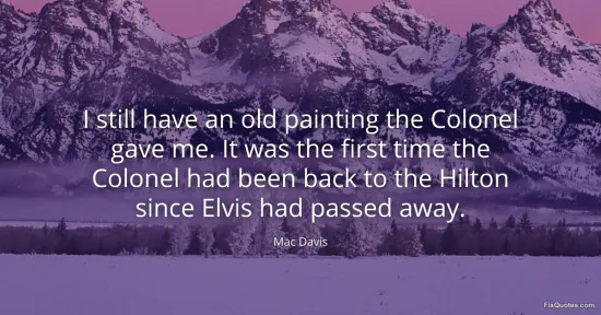 Davis, Mac. "I still have an old painting the Colonel gave me. It was the first time the Colonel had been back to the Hilton since Elvis had passed away." FixQuotes. January 15, 2026. https://fixquotes.com/quotes/i-still-have-an-old-painting-the-colonel-gave-me-153782/.