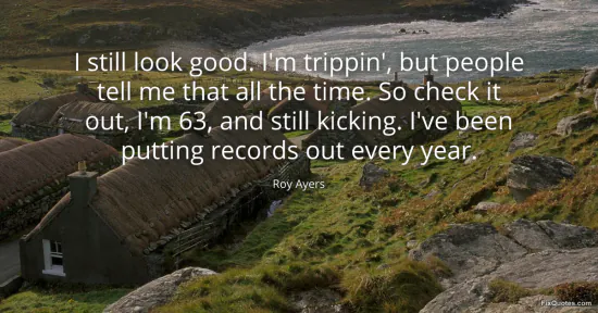 Ayers, Roy. (2026, January 16). I still look good. I'm trippin', but people tell me that all the time. So check it out, I'm 63, and still kicking. I've been putting records out every year. FixQuotes. https://fixquotes.com/quotes/i-still-look-good-im-trippin-but-people-tell-me-85534/