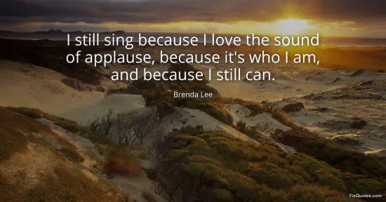 Lee, Brenda. "I still sing because I love the sound of applause, because it's who I am, and because I still can." FixQuotes. January 17, 2026. https://fixquotes.com/quotes/i-still-sing-because-i-love-the-sound-of-applause-61431/.