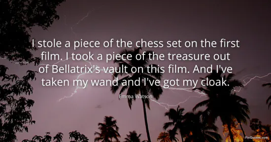 Watson, Emma. (2026, January 17). I stole a piece of the chess set on the first film. I took a piece of the treasure out of Bellatrix's vault on this film. And I've taken my wand and I've got my cloak. FixQuotes. https://fixquotes.com/quotes/i-stole-a-piece-of-the-chess-set-on-the-first-42039/