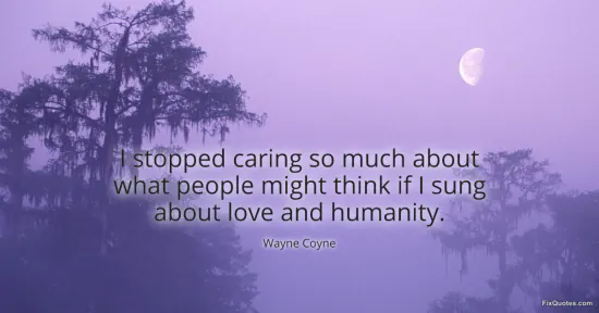 Coyne, Wayne. (2026, January 16). I stopped caring so much about what people might think if I sung about love and humanity. FixQuotes. https://fixquotes.com/quotes/i-stopped-caring-so-much-about-what-people-might-96476/