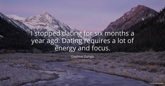 Zuniga, Daphne. "I stopped dating for six months a year ago. Dating requires a lot of energy and focus." FixQuotes. January 15, 2026. https://fixquotes.com/quotes/i-stopped-dating-for-six-months-a-year-ago-dating-171183/.