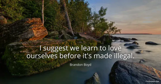 Boyd, Brandon. (2026, January 15). I suggest we learn to love ourselves before it's made illegal. FixQuotes. https://fixquotes.com/quotes/i-suggest-we-learn-to-love-ourselves-before-its-130841/