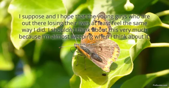 "I suppose and I hope that the young guys who are out there losing their lives at least feel the same way I did. I shouldn't think about this very much because I'm almost weeping when I think about it." FixQuotes, 18 Jan. 2026, https://fixquotes.com/quotes/i-suppose-and-i-hope-that-the-young-guys-who-are-6964/. Accessed 27 Mar. 2026.