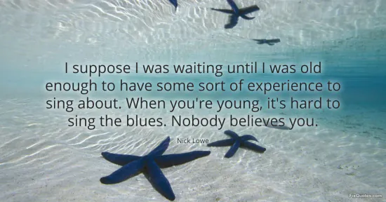 Lowe, Nick. "I suppose I was waiting until I was old enough to have some sort of experience to sing about. When you're young, it's hard to sing the blues. Nobody believes you." FixQuotes. January 17, 2026. https://fixquotes.com/quotes/i-suppose-i-was-waiting-until-i-was-old-enough-to-75468/.
