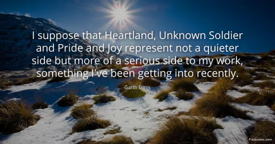 Ennis, Garth. "I suppose that Heartland, Unknown Soldier and Pride and Joy represent not a quieter side but more of a serious side to my work, something I've been getting into recently." FixQuotes. January 15, 2026. https://fixquotes.com/quotes/i-suppose-that-heartland-unknown-soldier-and-164691/.