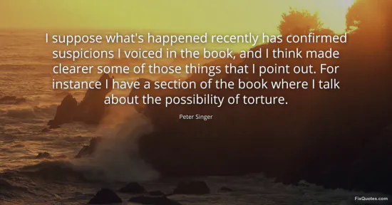 Singer, Peter. "I suppose what's happened recently has confirmed suspicions I voiced in the book, and I think made clearer some of those things that I point out. For instance I have a section of the book where I talk about the possibility of torture." FixQuotes. January 15, 2026. https://fixquotes.com/quotes/i-suppose-whats-happened-recently-has-confirmed-151994/.