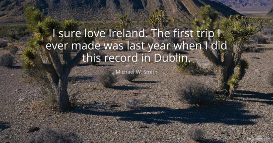 Smith, Michael W. (2026, January 16). I sure love Ireland. The first trip I ever made was last year when I did this record in Dublin. FixQuotes. https://fixquotes.com/quotes/i-sure-love-ireland-the-first-trip-i-ever-made-93742/