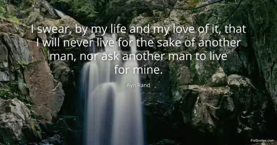 Rand, Ayn. (2026, January 15). I swear, by my life and my love of it, that I will never live for the sake of another man, nor ask another man to live for mine. FixQuotes. https://fixquotes.com/quotes/i-swear-by-my-life-and-my-love-of-it-that-i-will-29979/
