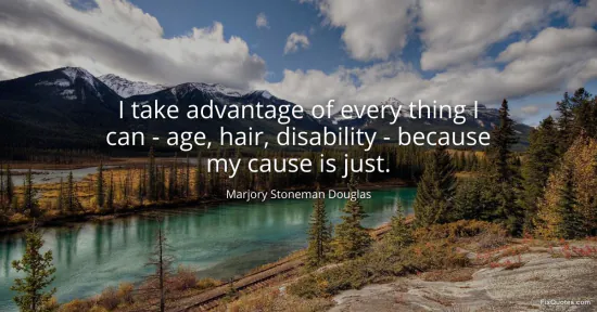 Douglas, Marjory Stoneman. (2026, January 17). I take advantage of every thing I can - age, hair, disability - because my cause is just. FixQuotes. https://fixquotes.com/quotes/i-take-advantage-of-every-thing-i-can-age-hair-61355/