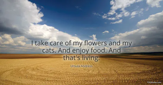 Andress, Ursula. (2026, January 15). I take care of my flowers and my cats. And enjoy food. And that's living. FixQuotes. https://fixquotes.com/quotes/i-take-care-of-my-flowers-and-my-cats-and-enjoy-163319/
