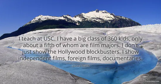 Maltin, Leonard. (2026, January 15). I teach at USC. I have a big class of 360 kids, only about a fifth of whom are film majors. I don't just show the Hollywood blockbusters. I show independent films, foreign films, documentaries. FixQuotes. https://fixquotes.com/quotes/i-teach-at-usc-i-have-a-big-class-of-360-kids-144363/