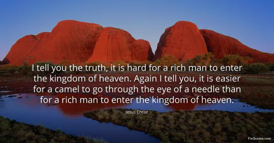 Christ, Jesus. "I tell you the truth, it is hard for a rich man to enter the kingdom of heaven. Again I tell you, it is easier for a camel to go through the eye of a needle than for a rich man to enter the kingdom of heaven." FixQuotes. January 17, 2026. https://fixquotes.com/quotes/i-tell-you-the-truth-it-is-hard-for-a-rich-man-to-74925/.