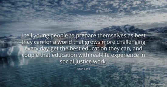 Bond, Julian. (2026, January 16). I tell young people to prepare themselves as best they can for a world that grows more challenging every day-get the best education they can, and couple that education with real-life experience in social justice work. FixQuotes. https://fixquotes.com/quotes/i-tell-young-people-to-prepare-themselves-as-best-129706/