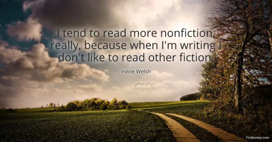 Welsh, Irvine. (2026, January 15). I tend to read more nonfiction, really, because when I'm writing I don't like to read other fiction. FixQuotes. https://fixquotes.com/quotes/i-tend-to-read-more-nonfiction-really-because-151001/