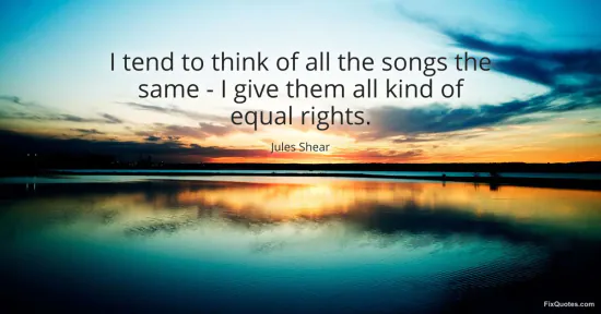 Shear, Jules. (2026, January 16). I tend to think of all the songs the same - I give them all kind of equal rights. FixQuotes. https://fixquotes.com/quotes/i-tend-to-think-of-all-the-songs-the-same-i-85977/