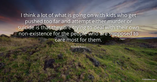 Russo, Richard. "I think a lot of what is going on with kids who get pushed too far and attempt either murder or suicide is that they are trying to deal with their own non-existence for the people who are supposed to care most for them." FixQuotes. January 16, 2026. https://fixquotes.com/quotes/i-think-a-lot-of-what-is-going-on-with-kids-who-118002/.