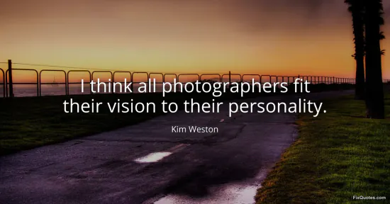 Weston, Kim. "I think all photographers fit their vision to their personality." FixQuotes. January 18, 2026. https://fixquotes.com/quotes/i-think-all-photographers-fit-their-vision-to-4132/.