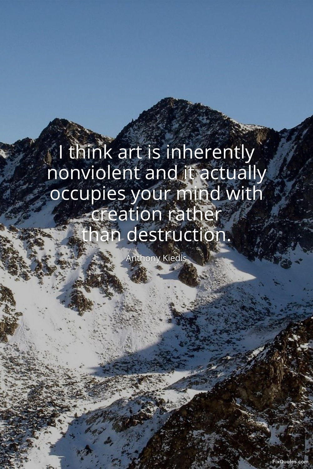 Kiedis, Anthony. "I think art is inherently nonviolent and it actually occupies your mind with creation rather than destruction." FixQuotes. January 17, 2026. https://fixquotes.com/quotes/i-think-art-is-inherently-nonviolent-and-it-64011/.
