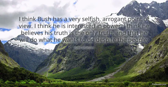 "I think Bush has a very selfish, arrogant point of view. I think he is interested in power, I think he believes his truth is the only truth, and that he will do what he wants to do despite the people." FixQuotes, 16 Jan. 2026, https://fixquotes.com/quotes/i-think-bush-has-a-very-selfish-arrogant-point-of-112100/. Accessed 11 Feb. 2026.