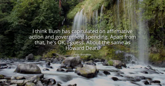 The barb here isn’t that Bush is “OK”; it’s that “OK” is delivered like a shrug after a betrayal. Brimelow frames affirmative action and government spending as the true litmus tests of conservative authenticity, then treats everything else as background noise. That prioritization is the tell. In a single sentence, he narrows the definition of “real” right-wing governance to culture-coded redistribution and the size of the state, implying that foreign policy, executive power, and even party loyalty are secondary compared to those domestic flashpoints.
