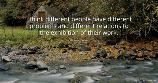 Serra, Richard. (2026, January 16). I think different people have different problems and different relations to the exhibition of their work. FixQuotes. https://fixquotes.com/quotes/i-think-different-people-have-different-problems-129066/
