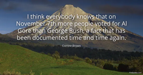 Brown, Corrine. (2026, January 17). I think everybody knows that on November 7th more people voted for Al Gore than George Bush, a fact that has been documented time and time again. FixQuotes. https://fixquotes.com/quotes/i-think-everybody-knows-that-on-november-7th-more-72728/