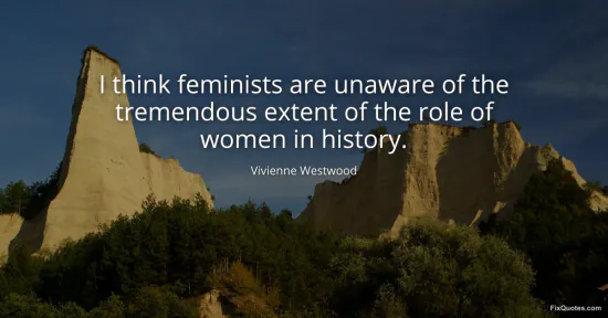 Westwood, Vivienne. (2026, January 18). I think feminists are unaware of the tremendous extent of the role of women in history. FixQuotes. https://fixquotes.com/quotes/i-think-feminists-are-unaware-of-the-tremendous-23224/