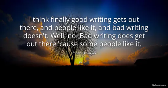 Parker, Robert B. "I think finally good writing gets out there, and people like it, and bad writing doesn't. Well, no. Bad writing does get out there 'cause some people like it." FixQuotes. January 17, 2026. https://fixquotes.com/quotes/i-think-finally-good-writing-gets-out-there-and-71140/.