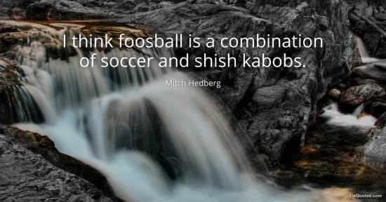 Hedberg, Mitch. "I think foosball is a combination of soccer and shish kabobs." FixQuotes. January 15, 2026. https://fixquotes.com/quotes/i-think-foosball-is-a-combination-of-soccer-and-20553/.