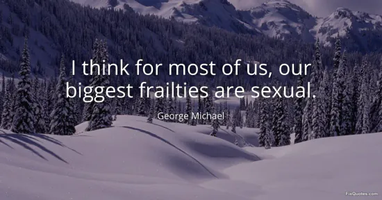 Michael, George. "I think for most of us, our biggest frailties are sexual." FixQuotes. January 15, 2026. https://fixquotes.com/quotes/i-think-for-most-of-us-our-biggest-frailties-are-148442/.