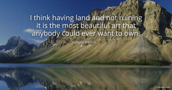 Warhol, Andy. (2026, January 15). I think having land and not ruining it is the most beautiful art that anybody could ever want to own. FixQuotes. https://fixquotes.com/quotes/i-think-having-land-and-not-ruining-it-is-the-15241/