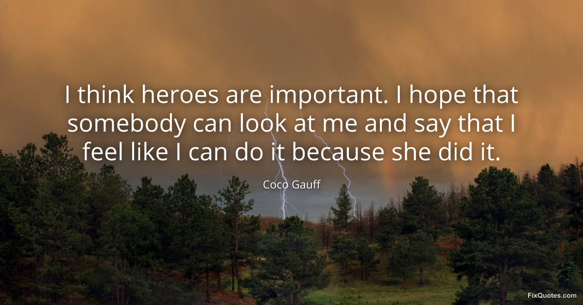 Gauff, Coco. (2026, March 17). I think heroes are important. I hope that somebody can look at me and say that I feel like I can do it because she did it. FixQuotes. https://fixquotes.com/quotes/i-think-heroes-are-important-i-hope-that-somebody-186134/