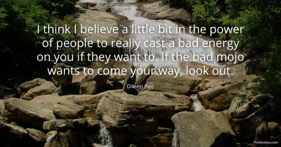 Rao, Dileep. "I think I believe a little bit in the power of people to really cast a bad energy on you if they want to. If the bad mojo wants to come your way, look out." FixQuotes. January 16, 2026. https://fixquotes.com/quotes/i-think-i-believe-a-little-bit-in-the-power-of-111504/.
