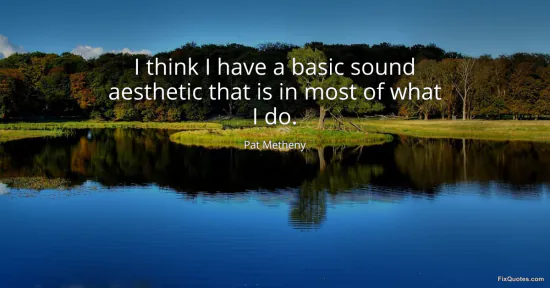 Metheny, Pat. "I think I have a basic sound aesthetic that is in most of what I do." FixQuotes. January 15, 2026. https://fixquotes.com/quotes/i-think-i-have-a-basic-sound-aesthetic-that-is-in-151119/.