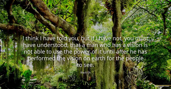 Elk, Black. "I think I have told you, but if I have not, you must have understood, that a man who has a vision is not able to use the power of it until after he has performed the vision on earth for the people to see." FixQuotes. January 17, 2026. https://fixquotes.com/quotes/i-think-i-have-told-you-but-if-i-have-not-you-69888/.
