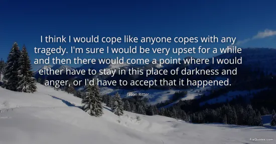 Ritter, Jason. "I think I would cope like anyone copes with any tragedy. I'm sure I would be very upset for a while and then there would come a point where I would either have to stay in this place of darkness and anger, or I'd have to accept that it happened." FixQuotes. January 15, 2026. https://fixquotes.com/quotes/i-think-i-would-cope-like-anyone-copes-with-any-120091/.