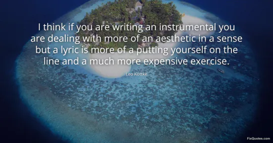Kottke, Leo. (2026, January 17). I think if you are writing an instrumental you are dealing with more of an aesthetic in a sense but a lyric is more of a putting yourself on the line and a much more expensive exercise. FixQuotes. https://fixquotes.com/quotes/i-think-if-you-are-writing-an-instrumental-you-64542/