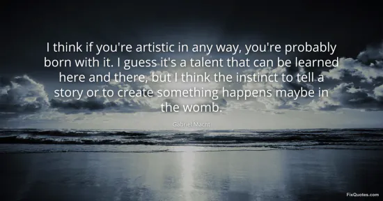 Macht, Gabriel. "I think if you're artistic in any way, you're probably born with it. I guess it's a talent that can be learned here and there, but I think the instinct to tell a story or to create something happens maybe in the womb." FixQuotes. January 15, 2026. https://fixquotes.com/quotes/i-think-if-youre-artistic-in-any-way-youre-173021/.